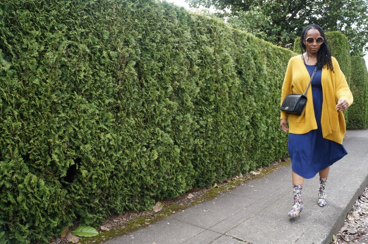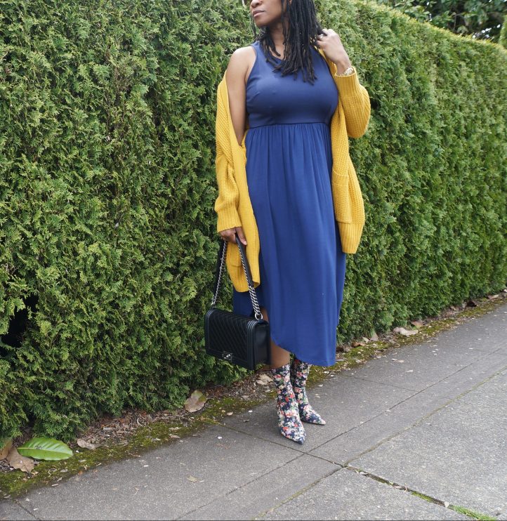 First… take a slouchy cardigan the color of your least favorite condiment and slather it over the top.