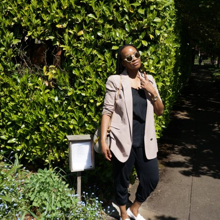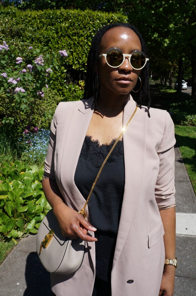 Blazer: Chalayan split back, crepe twill blazer, bought in a consignment store (unavailable); similar here, here, here