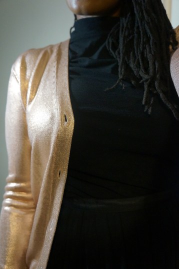 Of course you can wear velvet or sequin or jewel tones and there are cardigans with all of these features. There are no words for how I feel about this shimmering rose gold stunner, so I’ll just have you look at it and come up with your own.
